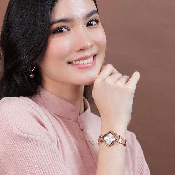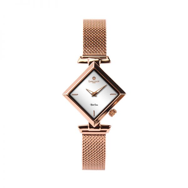 Dengan desain yang unik, Lanccelot membuat bentuk jam tangan kotak tepatnya belah ketupat dengan dimensi yang simetris. Memiliki dial yang bergradasi dengan perpaduan case berwarna rose gold dengan strap kulit membuat jam tangan Belle of Carrot Cake terlihat sangat soft dan mewah saat digunakan.