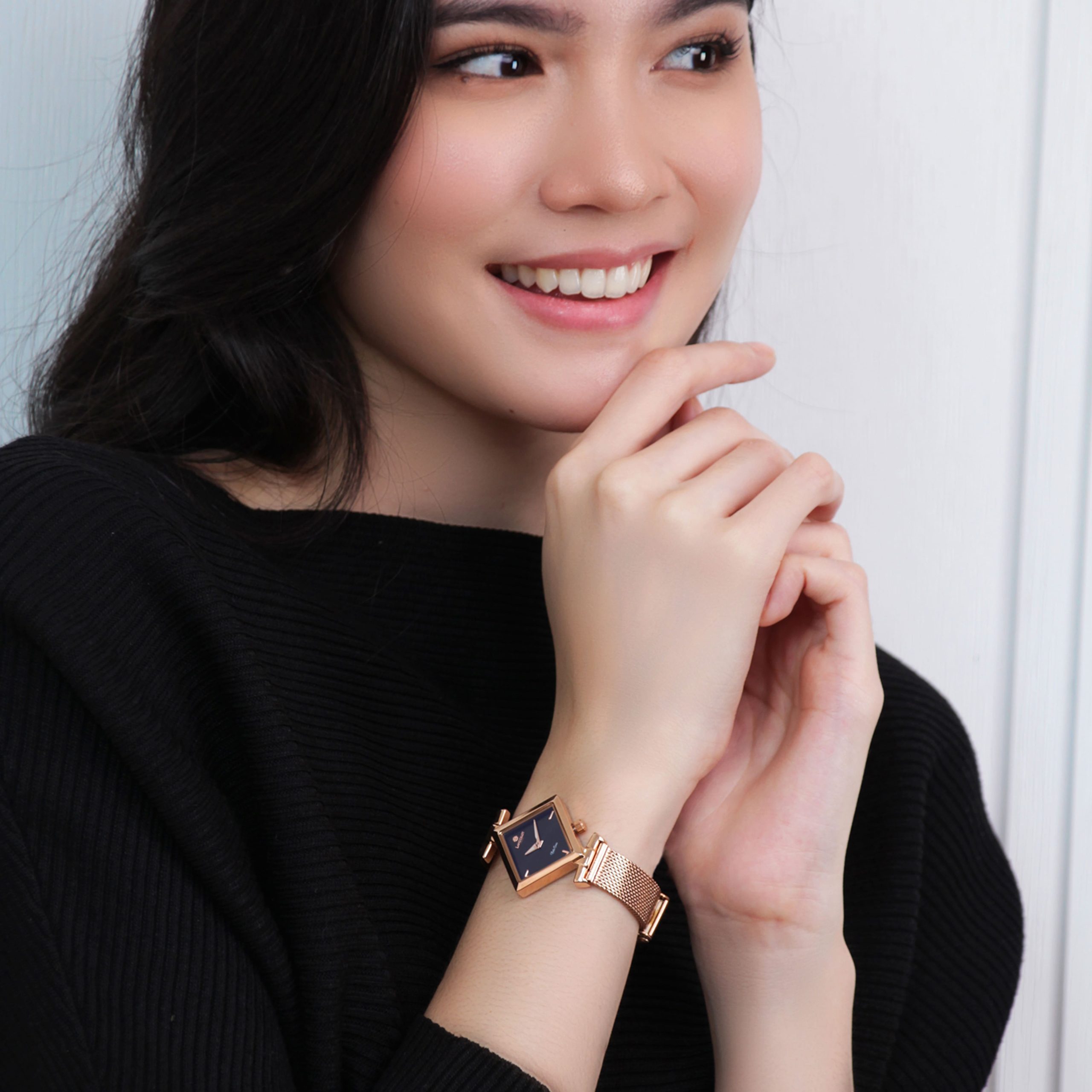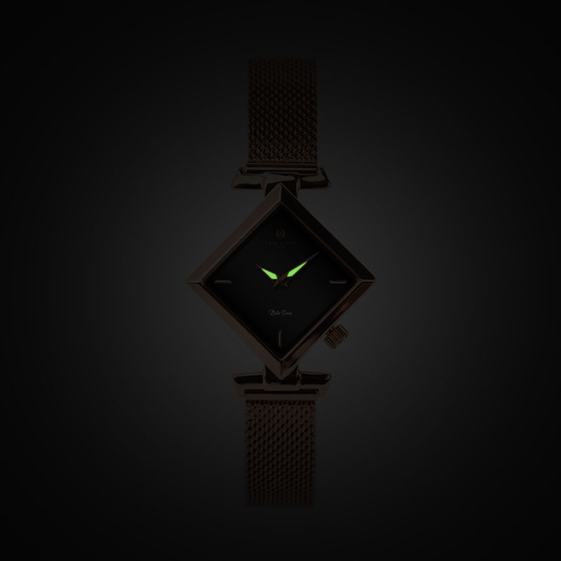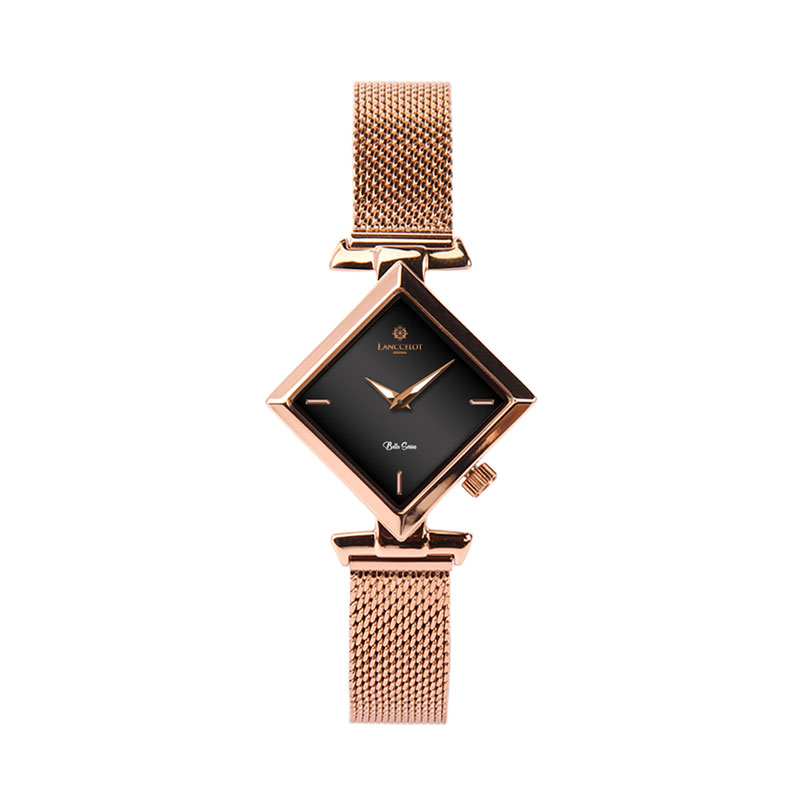 Dengan desain yang unik, Lanccelot membuat bentuk jam tangan kotak tepatnya belah ketupat dengan dimensi yang simetris. Memiliki dial dengan warna hitam dengan perpaduan case dan mesh strap berwarna rose gold membuat jam tangan Belle of Charlotte terlihat sangat mewah saat digunakan.