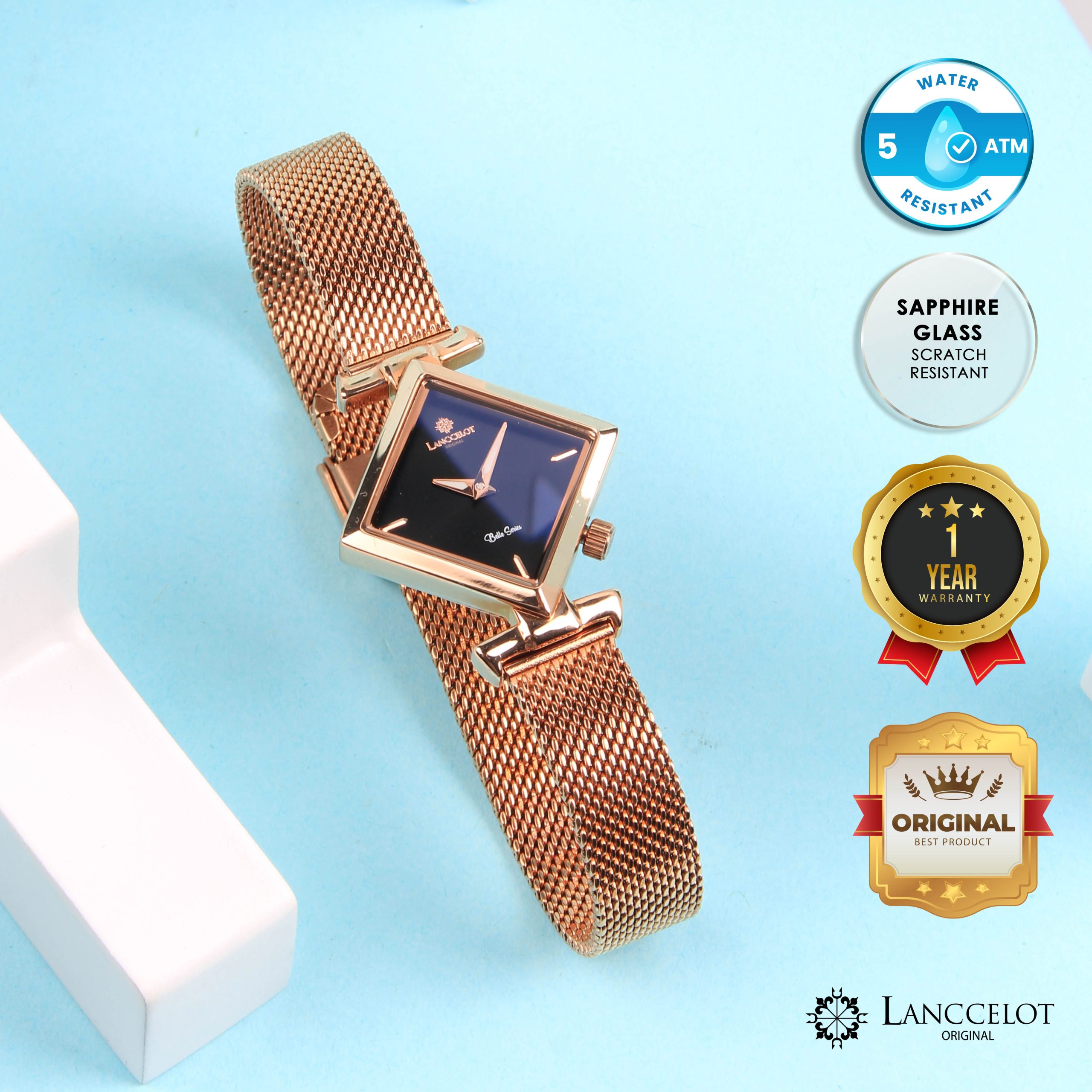Warna rose gold pada strapnya melambangkan kemewahan dari aura seseorang, membuat jam tangan Belle of Charlotte ini didesain untuk mereka yang memiliki rasa percaya diri yang kuat. Jadi, jangan ragu mencoba Belle of Charlotte untuk menjadi aksesoris fashion Anda. Lanccelot membuat jam tangan seri Belle of Charlotte yang dilapisi kaca safir anti gores, dan juga bentuk yang sangat unik sehingga sangat cocok untuk melengkapi segala aktivitas dan gaya Anda.