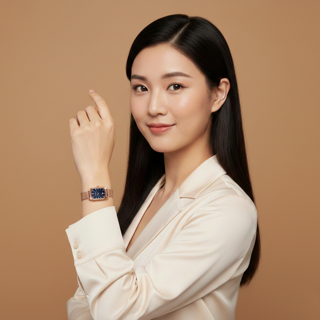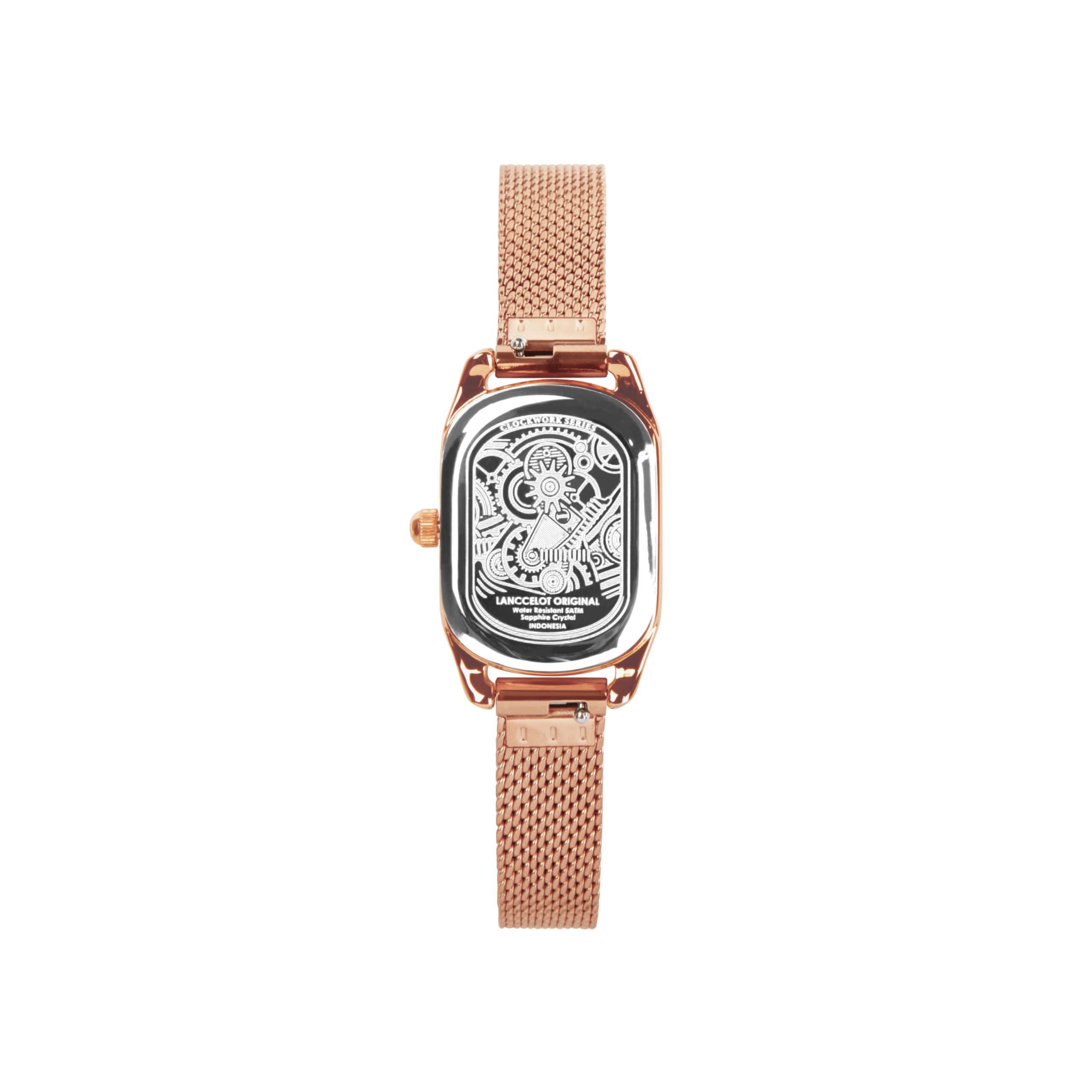 Clockwork of London dipadukan dengan strap mesh berwarna rosegold, material mesh memberikan kesan ringan, fleksibel, dan modern, sementara warna rose gold menghadirkan nuansa hangat dan feminin yang elegan. Kombinasi ini menciptakan keseimbangan antara kekuatan dan kelembutan merepresentasikan wanita modern yang tangguh namun tetap anggun. Clockwork of London juga dilengkapi dengan fitur yang menunjang aktivitas sehari-hari seperti fitur tanggal, water resistant dan sapphire glass.