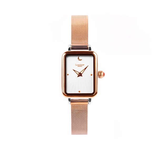 Lorelei merupakan bahasa jerman yang merupakan batu curam yang memiliki ketinggian 13 meter di tepi kanan Sungai Rhine di Ngarai Rhine. Dalam ranah horologi, seringkali para penjahat memiliki daya pikat dan pesona yang meninggalkan bekas yang tidak terlupakan. Jam tangan Lanccelot kali ini terinspirasi dari Lorelei yang memiliki strap dan case berwarna rose gold dan dial yang bermotif berwarna merah muda.