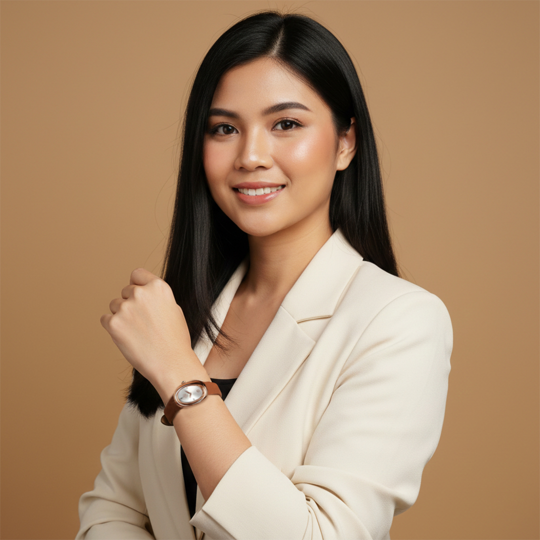 Puffin of Eagle mengusung desain minimalis dengan dial putih yang bersih dan terang, menekankan kesederhanaan namun tetap elegan. Dial putih memudahkan pembacaan waktu dan menonjolkan jarum serta indeks dengan jelas, mencerminkan filosofi burung eagle: presisi, fokus, dan elegan dalam setiap gerakan. Case berwarna rose gold menambahkan nuansa hangat dan feminin, memberikan kontras yang menawan dengan dial putih.