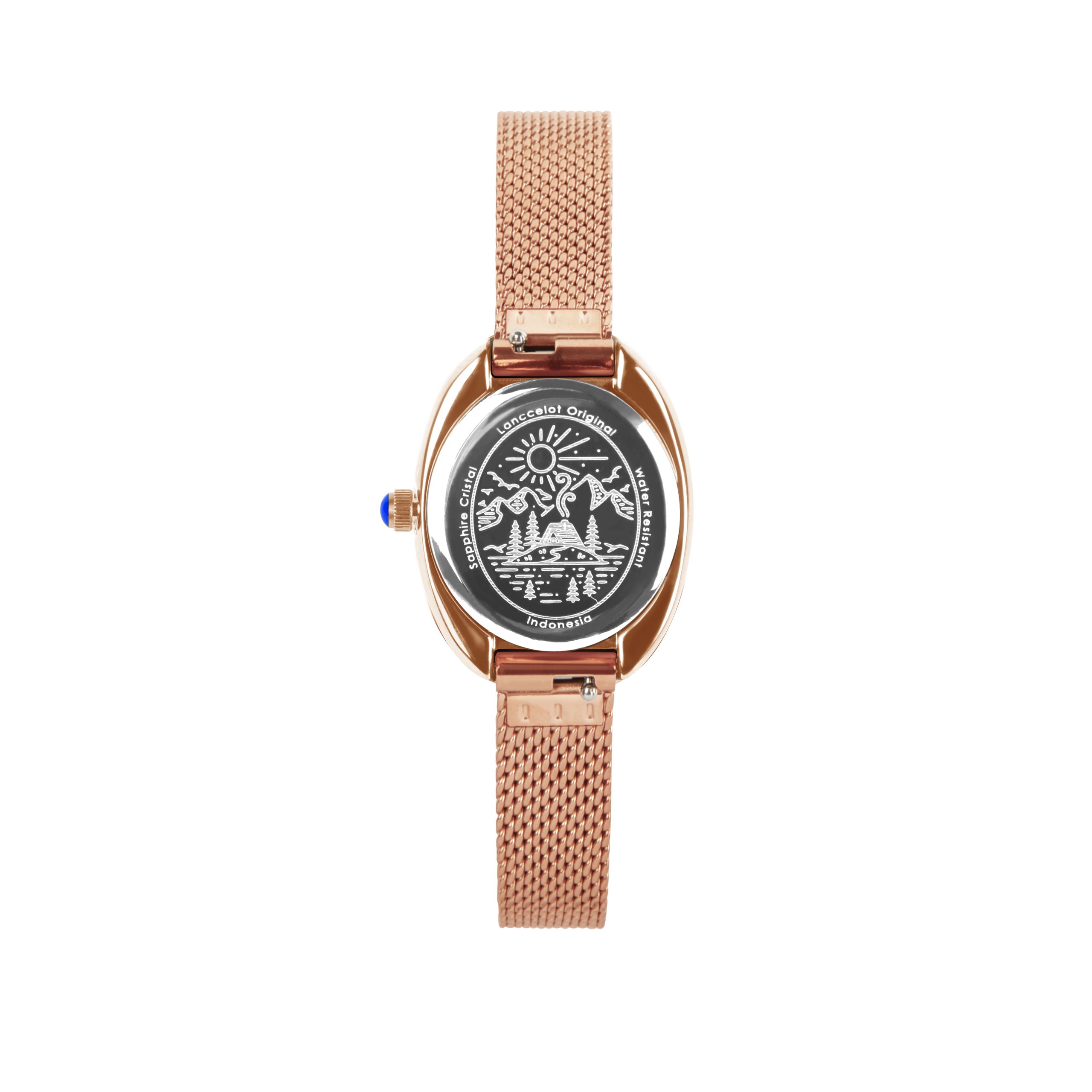 Dilengkapi strap mesh rose gold, Puffin of Gannet memberikan sentuhan modern yang ringan dan nyaman dipakai sepanjang hari. Material mesh tidak hanya elegan, tetapi juga fleksibel dan mudah disesuaikan dengan pergelangan tangan, menambahkan kesan sophisticated yang cocok untuk berbagai gaya, baik formal maupun kasual.. Puffin of Gannet tidak hanya mengedepankan estetika, tetapi juga fungsi yang relevan untuk aktivitas sehari-hari seperti fitur tanggal, water resistant dan sapphire glass.