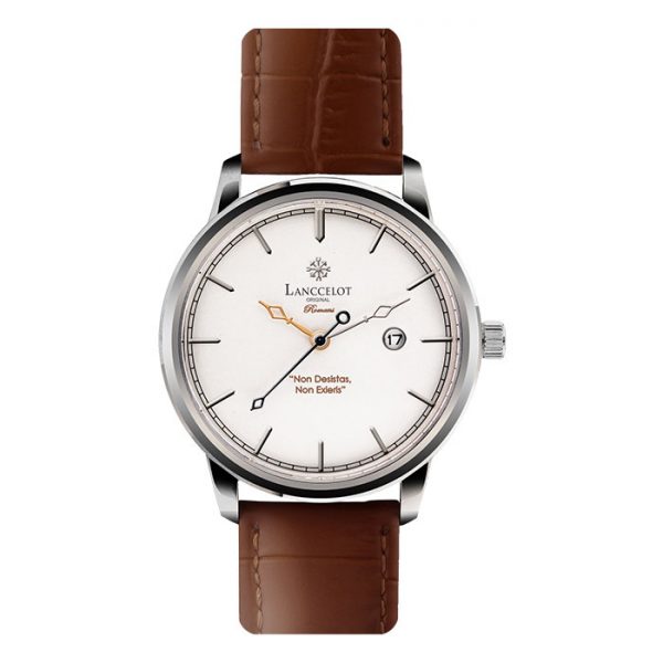 The Romans King of Legatus by Lanccelot adalah jam tangan sederhana dengan kombinasi warna klasik strap coklat tua, dial putih, dan case silver. Kasing perak dan pelat jam putih melambangkan Legatus sebagai pemimpin yang kuat dan tali coklat tua melambangkan keandalan Legatus sebagai perwira militer. Tampil klasik, Romans King of Legatus dari Lanccelot cocok untuk kamu yang suka berpenampilan formal dan elegan. Romans King of Legatus akan menjadi jam tangan sempurna yang Anda butuhkan sebagai aksesori fesyen Anda. Kasing jam tangan perak elegan yang indah dan juga tali kulit cokelatnya akan membuat jam tangan ini luar biasa dan luar biasa untuk dikenakan, terutama untuk acara-acara formal.