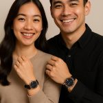 Warna hitam pada dial dan strap menghadirkan kesan maskulin, misterius, dan berwibawa, sementara sentuhan rosegold pada case memberikan nuansa mewah dan hangat tanpa terkesan berlebihan. Kombinasi ini membuat jam tangan ini cocok digunakan dalam berbagai suasana baik formal maupun kasual.