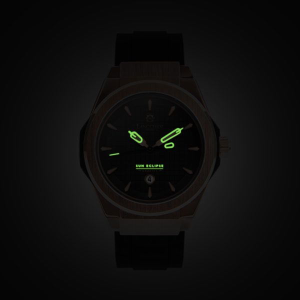 Sun Eclipse  merupakan posisi bulan terletak di antara bumi dan matahari sehingga terlihat menutup sebagian atau seluruh cahaya matahari di langit bumi. Sun eclipse merupakan fenomena alam, tetapi dalam sejarahnya sering dianggap sebagai pertanda atau firasat yang dapat memicu rasa takut karena matahari tampak hilang misterius dari langit menjadi gelap secara tiba-tiba. Dari kata sun eclipse, Lanccelot terinspirasi membuat jam tangan yang memiliki kesan misterius dengan berbagai tipe, salah satunya adalah Sun Eclipse Gravity Rubber of Charles.