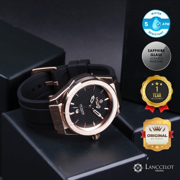 Sun Eclipse Gravity Rubber of Charles merupakan salah satu koleksi Lanccelot yang menggabungkan desain casual dengan sentuhan sporty yang sempurna. Sun Eclipse Gravity Rubber of Charles memiliki strap Rubber berwarna hitam yang terlihat mewah, memiliki case berwarna rose gold yang elegan, dan dial berwarna hitam dengan pattern kotak-kotak sehingga menciptakan kesan yang sangat menawan. Jam tangan ini sangat cocok untuk pria yang penuh kharisma yang sangat mengutamakan penampilan.