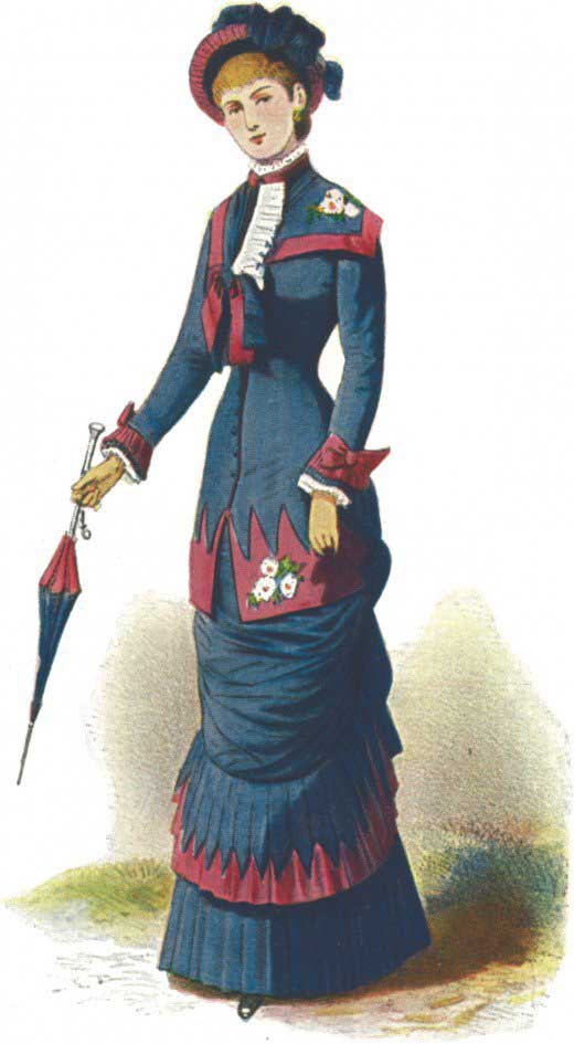 Meskipun idealnya gaya feminin yang prima dan tepat masa itu, jaman Victoria menciptakan tampilan yang sering dilebih – lebihkan, seperti korset ketat, rok raksasa dan hiruk pikuk membuat tren fashion terlihat lebih tenang dibandingkan dengan gaya yang terlalu didikte dengan kesopanan, yang menunjukkan kehormatan.